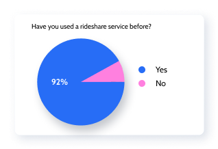 Matt, Ransky, and Reid were in charge of putting together a survey for current users of Lyft. The purpose of the survey was to identify problems users faced in the app and also see what users enjoyed about the app. We’ve depicted some key information gathered from the survey below.